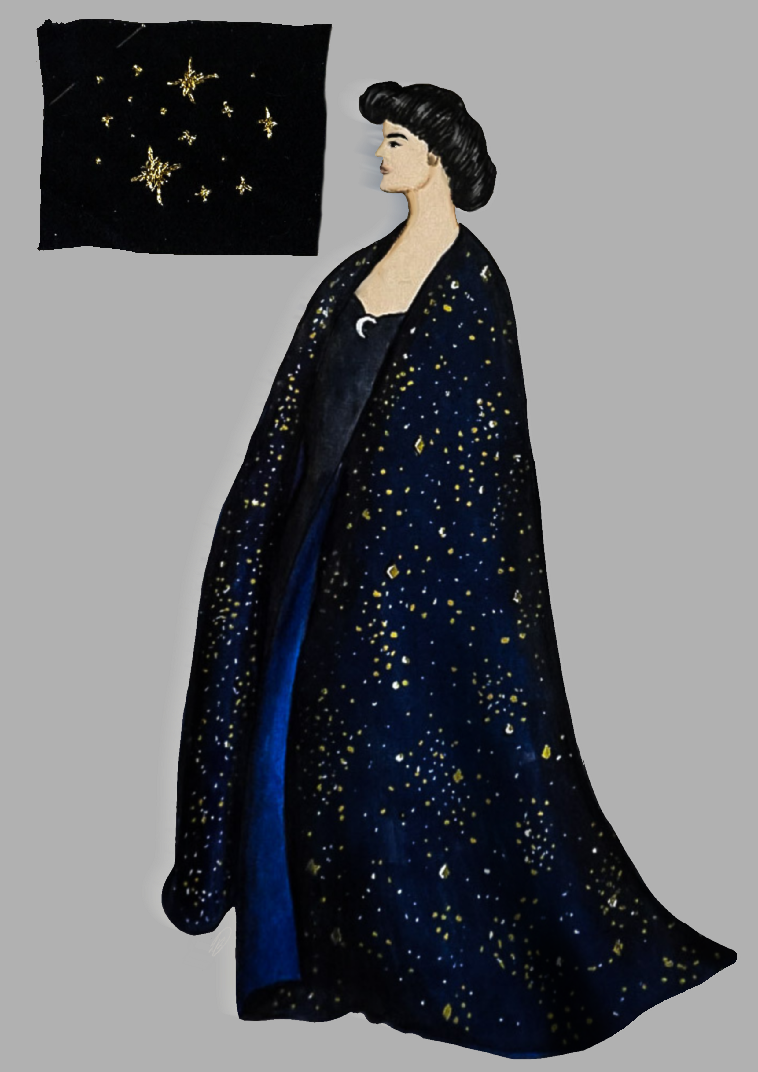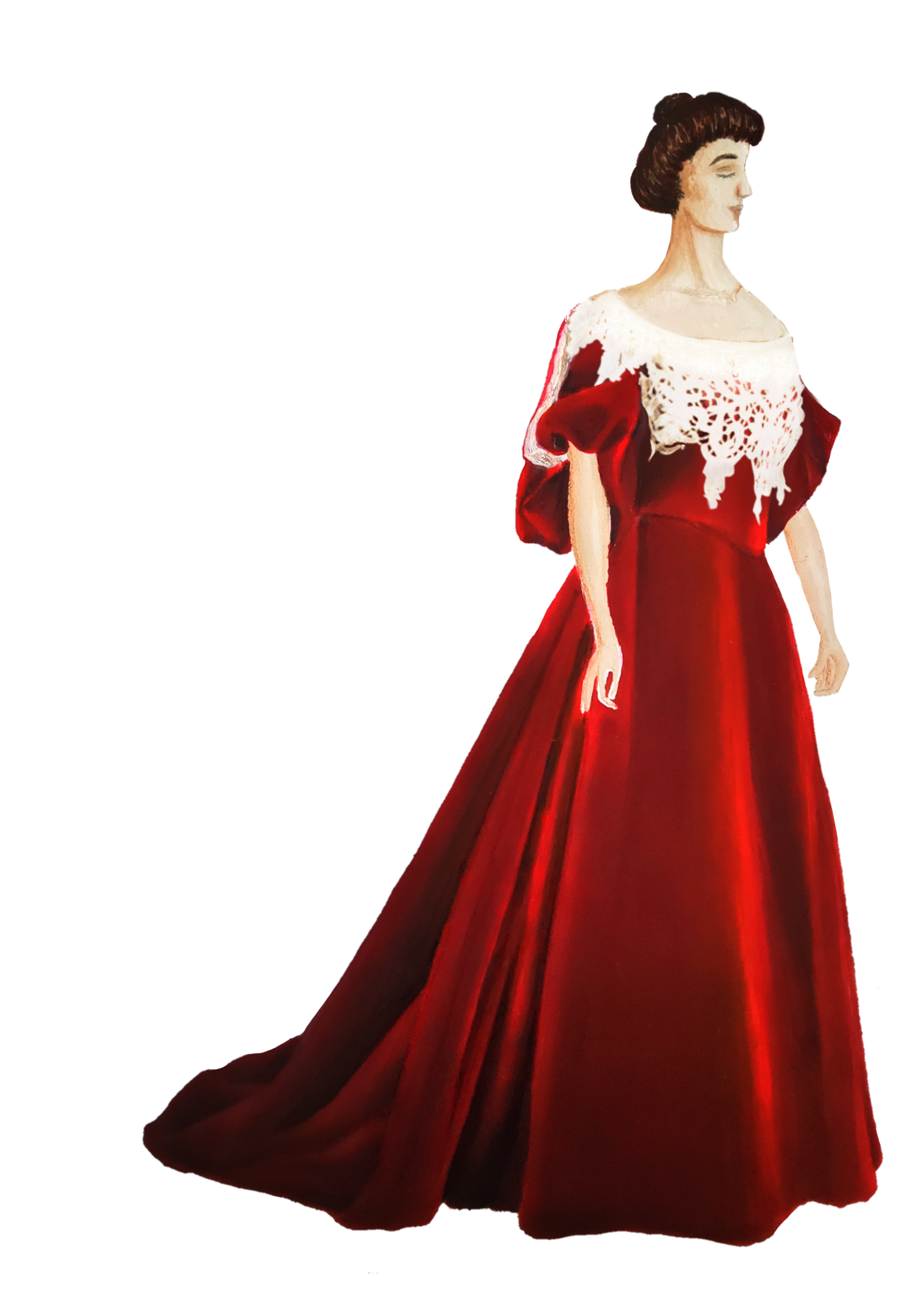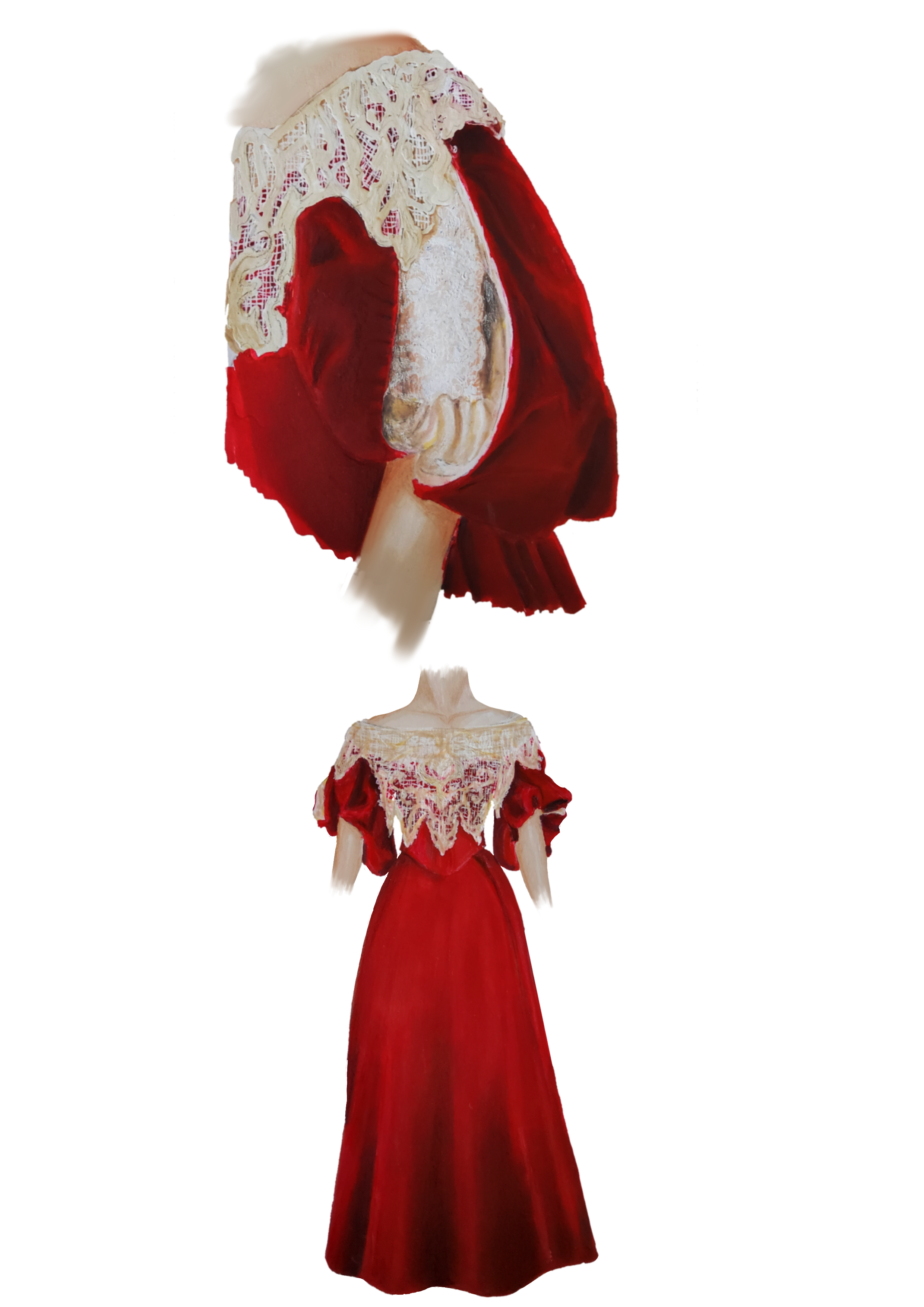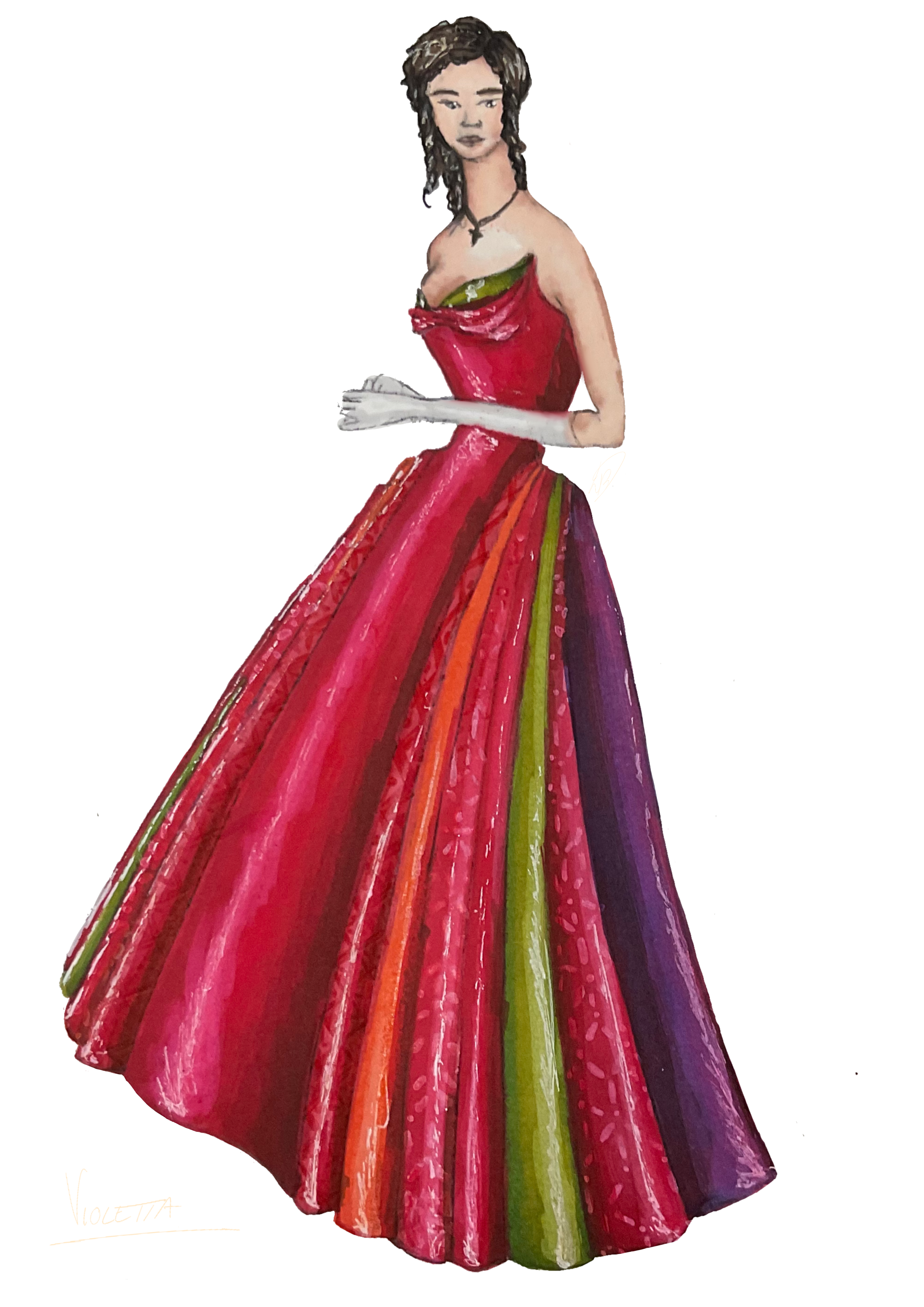 Digital illustration of the costume for a performance in the V&A Raphael room during the 2024 festival “Remastered”.